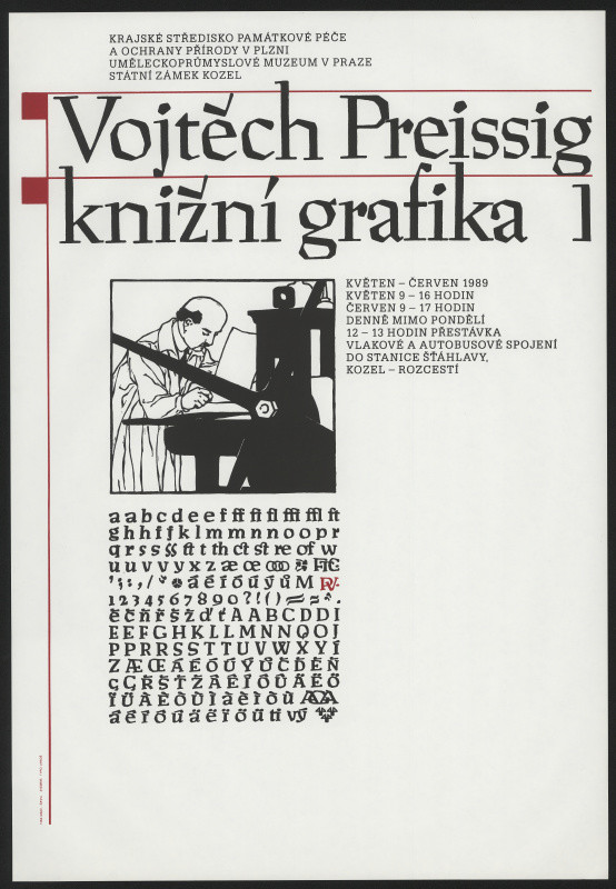 Preissig’s typography was a particularly significant contribution to modern print culture, as it included letters with diacritical marks—accents such as háčeks and other modifiers—at a time when printers were required to add these marks manually (fig. 2). Known for its distincly block-like, angular look, and developed in 1925, the Preissig Antiqua typeface is still used to this day.